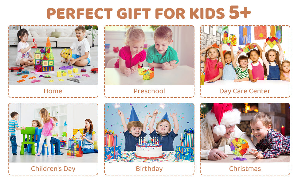 Perfect Gift Idea: Great for indoor fun, travel (like camping), and classrooms, this kids magnetic tiles set is a fantastic gift for Children's Day, birthdays, and Christmas! Ideal for children ages 3 and up, it's a wonderful way to create lasting memories with family and friends.